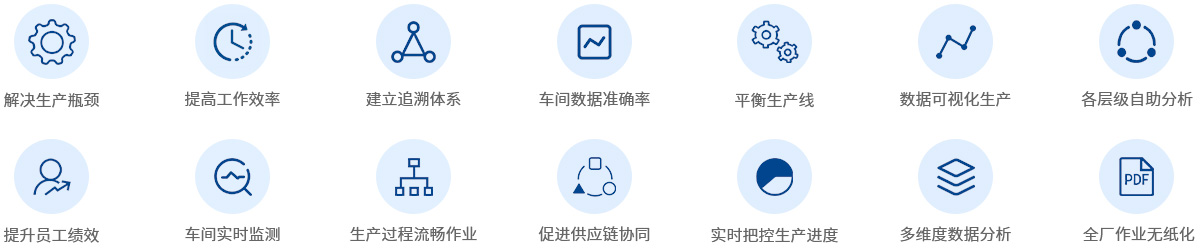 产品数据由条码或RFID进行数据化管控,在整个生产过程、生产异常、下线完工,全制程无间隙管控;设备防错与追溯;无纸化电子SOP;JIT拉动式的物流配送。